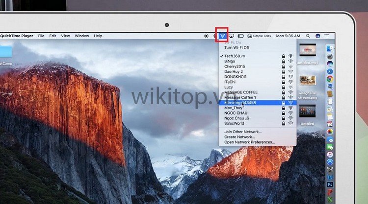 Bước 4: Trên Macbook, Anh/chị vào biểu tượng Wifi, rồi chọn Wifi Mirroring để tiến hành kết nối Wifi.