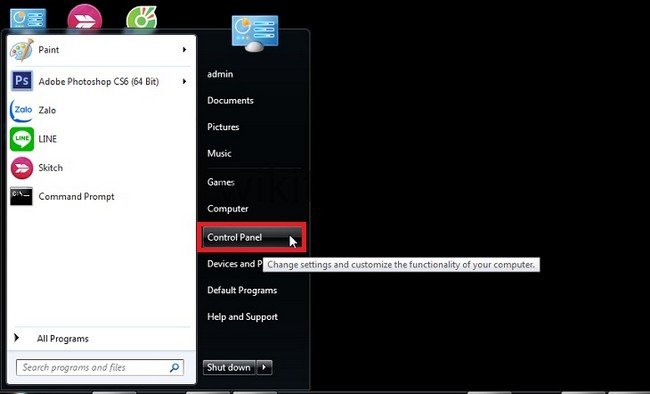 Bước 1: Anh/chị vẫn đi vào Menu Start, chọn Control Panel (Bảng điều khiển).