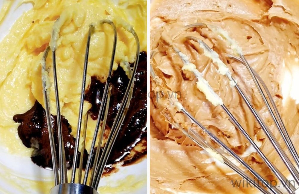 - Tiếp đó, Anh/chị dùng phới trộn đều hỗn hợp trên. Thêm 50gr bột mì vào và tiếp tục trộn đều tay.