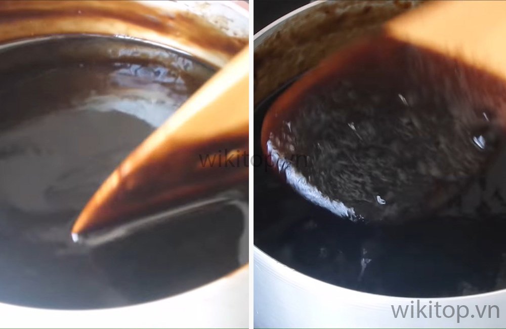 - Đợi cho nước sương sáo sôi lên rồi sẽ hạ lửa nhỏ xuống rồi tiếp tục đun khoảng 5-6 phút, lúc này hỗn hợp sương sáo đã sánh lại.