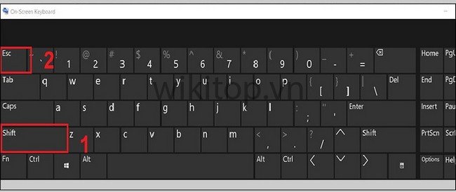 Anh/chị ấn tổ hợp Shift + Esc (hoặc Windows + Space) để mở trạng thái khóa bàn phím cho laptop.