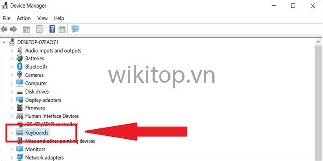 Bước 2: Khi cửa sổ Device Manager xuất hiện, Anh/chị nhấn mục Keyboards để biết bàn phím đang kết nối với máy tính.