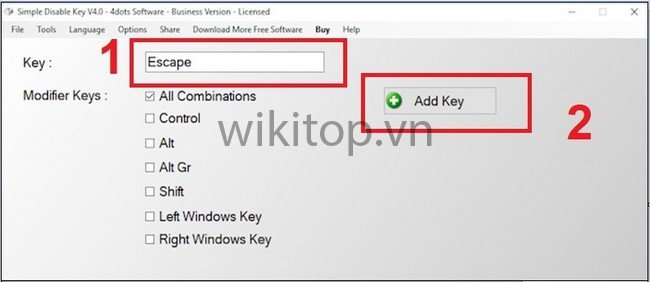 Ví dụ: Nếu muốn vô hiệu hóa phím Esc trên bàn phím, Anh/chị chỉ cần nhấn phím Esc trên bàn phím. Khi đó, phím Esc sẽ được thêm vào trong danh sách.