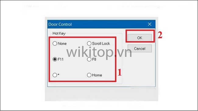 - Bước 2: Nhấp vào biểu tượng Door Control trên thanh Taskbar, chọn Hot Key > chọn bất kì phím tắt được hiện thị trong hộp thoại Door Control Hotkey > chọn OK.
