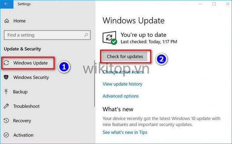 Bước 2: Tại mục Windows Update > chọn Check for updates.