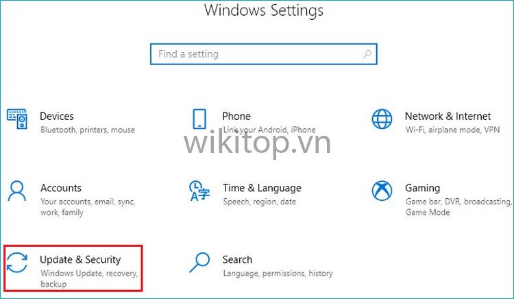 Bước 1: Chọn Settings > Chọn Update & Security.