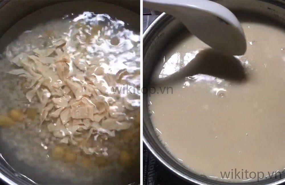 - Khi nước sôi thì thêm hạt bạch quả vào, hạ lửa vừa rồi nấu tiếp 15-20 phút.