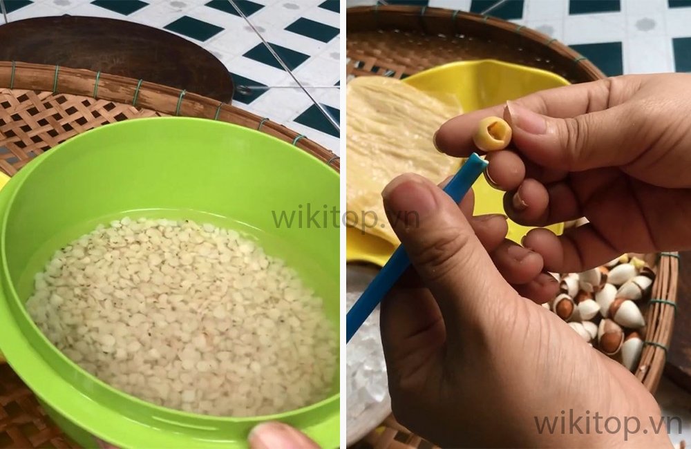 - Cuối cùng, lọc bỏ phần tim hạt bạch quả để lúc nấu không bị đắng là hoàn thành.