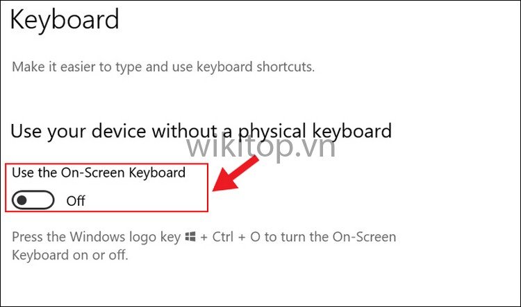 Bước 3: Tại bên phải màn hình chọn Turns on the On-Screen Keyboard sang ON.