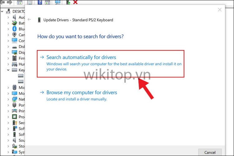 Bước 4: Để yêu cầu Windows tìm driver cho máy Anh/chị thì click chọn Search automatically for driver.