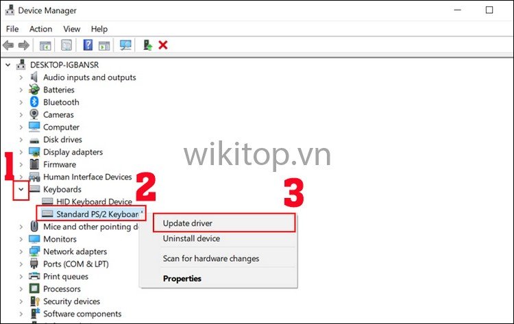 Để cài đặt lại driver bàn phím ta thực hiện các bước sau: