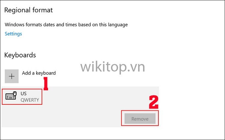 Bước 5: Sau khi chọn xong nhấn vào chuẩn bàn phím cũ và chọn Remove.