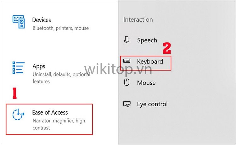 Bước 2: Chọn Ease of Access => chọn Keyboard.