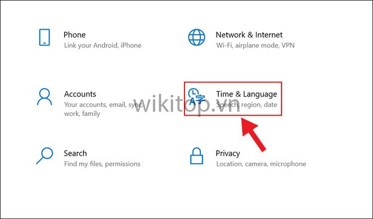 Bước 2: Chọn dòng Time & Language (Thời gian và ngôn ngữ).