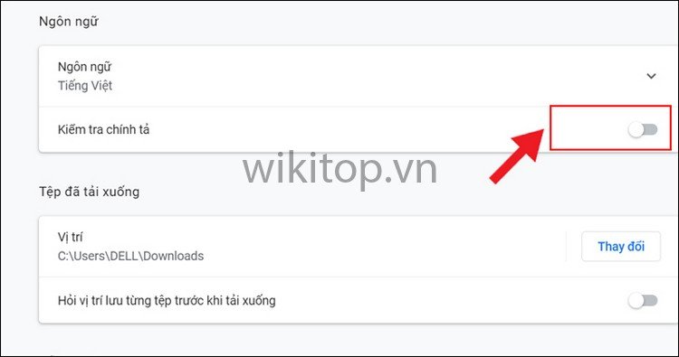 Bước 3: Ở màn hình chọn vào mục Ngôn ngữ => gạt nút Kiểm tra chính tả sang bên phải.