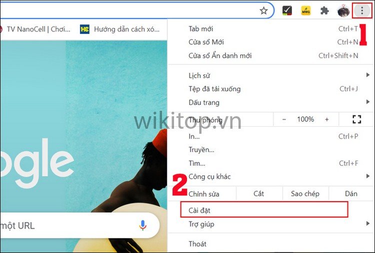 Bước 1: Trên thanh công cụ Google Chrome => chọn vào biểu tượng dấu 3 chấm ở góc trên bên phải => ấn chọn Cài đặt.