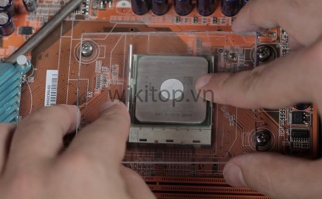 Cuối cùng, Anh/chị đặt phiến tản nhiệt lên bề mặt chip CPU và card màn hình để khóa lại, rồi lắp lại các vị trí như ban đầu. Vậy là xong!