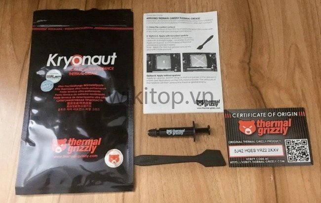 Keo tản nhiệt Thermal Grizzly Kryonaut: Là loại keo chứa nhiều thành phần gốm, có khả năng truyền nhiệt tốt nhưng không dẫn điện, không cần phải chờ keo khô và thường sử dụng cho dòng laptop thiết kế đồ họa.