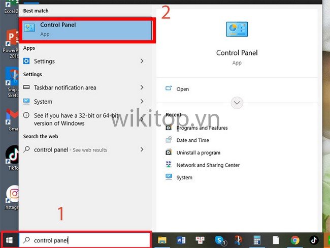 Bước 1: Chọn Start ở góc trái màn hình hoặc nút Windows trên bàn phím. Tiếp theo, Anh/chị gõ tìm kiếm control panel và nhấn Enter.