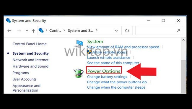 Bước 2: Nhấn chọn System and Security. Sau đó, Anh/chị chọn Power Options.