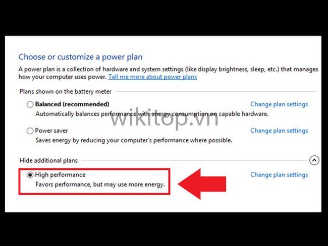 Bước 3: Cuối cùng chọn High performance, là Anh/chị đã hoàn thành cách sử dụng tính năng Power Options.