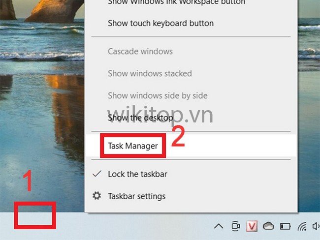 Bước 1: Nhấn chuột phải vào thanh Taskbar chọn Task Manager. Khi đó, màn hình sẽ hiển thị cửa sổ Task Manager.