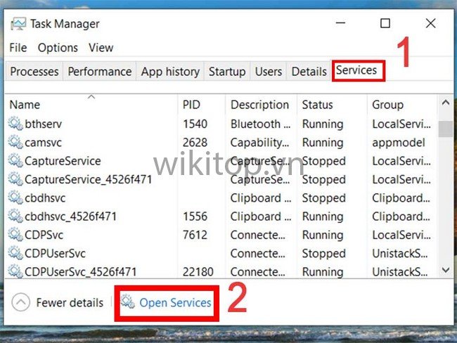 Bước 3: Chọn tab Services. Tiếp theo, chọn Open Services để tìm kiếm nguồn gốc của WmiPrvSE.exe.