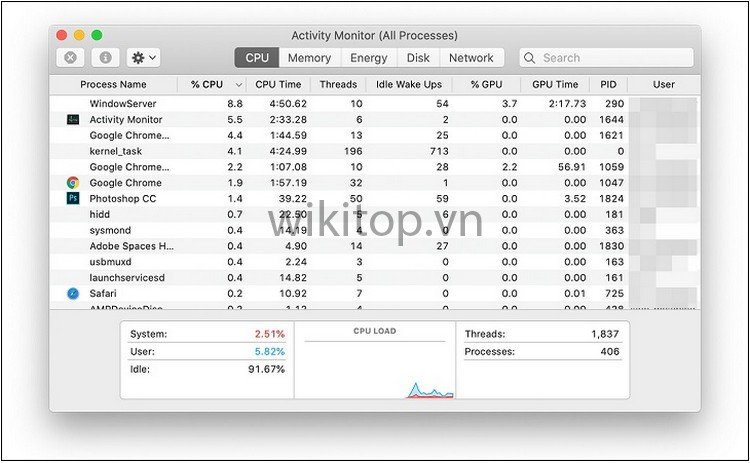4. Dùng Activity Monitor.