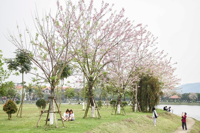 Hoa đỗ mai nở tại công viên hồ điều hòa Văn Miếu